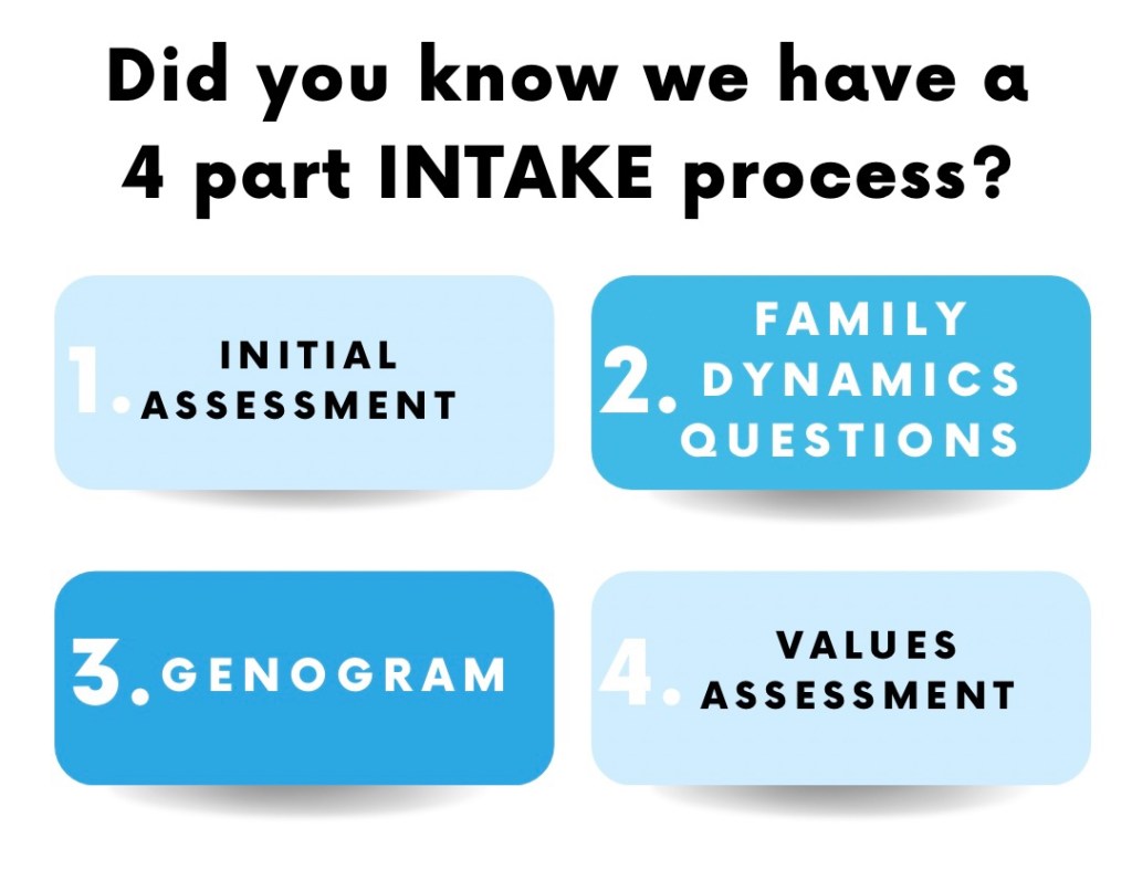 In our office we do a longer intake process to help to understand who you are and where you are. We don’t just jump into change. We want to find your current strengths and find ways to build on the skills you already have in your life.