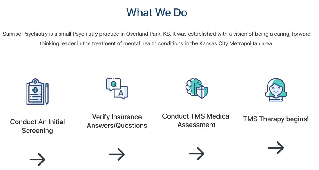 Sunrise Psychiatry is a small Psychiatry practice in Overland Park, KS. It was established with a vision of being a caring, forward thinking leader in the treatment of mental health conditions in the Kansas City Metropolitan area .Â