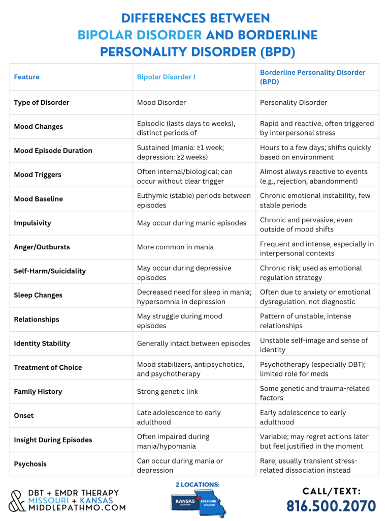 Mental health conditions can be confusing — especially when symptoms overlap. One of the most common misunderstandings in the mental health world is the confusion between Borderline Personality Disorder (BPD) and Bipolar Disorder. While both conditions involve emotional instability, they are fundamentally different diagnoses, with unique causes, symptoms, and treatment paths.